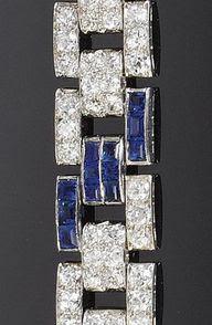 An art deco sapphire and diamond bracelet, circa 1930 The articulated row of convex buckle-shaped links, set throughout with old brilliant-cut diamonds and calibré-cut sapphires, to a concealed clasp, diamonds approximately 8.80 carats total, length 18.5cm.